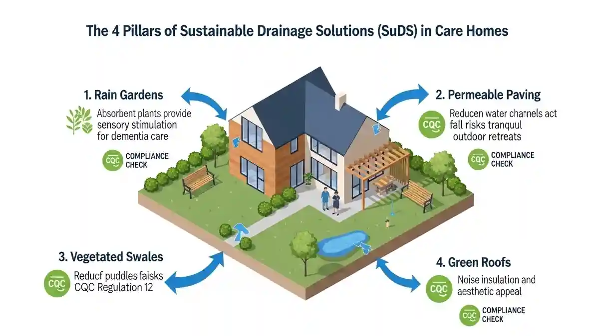The future of sustainable drainage solutions CQC care home design is the integration of SuDS (Sustainable Drainage Systems). In Marlow, Policy EN18 of the Local Plan encourages SuDS to manage surface water runoff, which often plagues the surrounding area.
